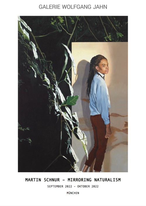 Together with the model and camerawoman Daniela Beranek (who he has been working with for many years) and with the help of a large mirror, the ideal setting is then set up for photographic shots. These are meticulously prepared, even poses and gestures are not random or improvised, but carefully staged. Schnur draws inspiration for his paintings from the resulting images and transforms them into multilayered compositions beyond purely photorealistic pictorial works.